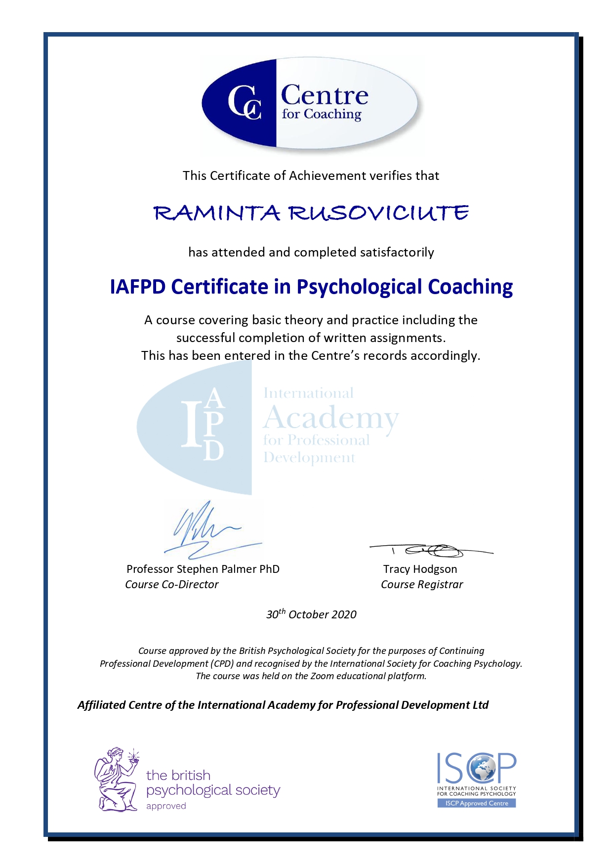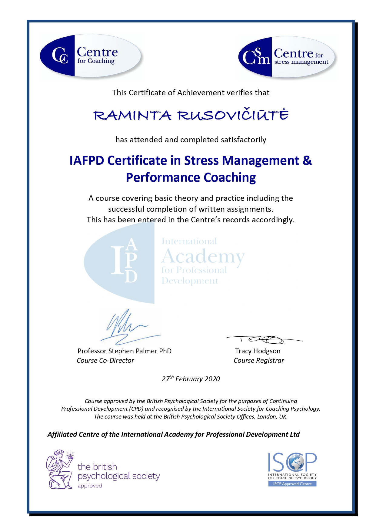 And here I am, proudly calling myself certified Coach from one of the best Coaching Centers in London or even in all the world. I truly believe that I had the chance to learn from the best professionals who have years and years of experiences in Cognitive Behavioral Coaching and Psychology.